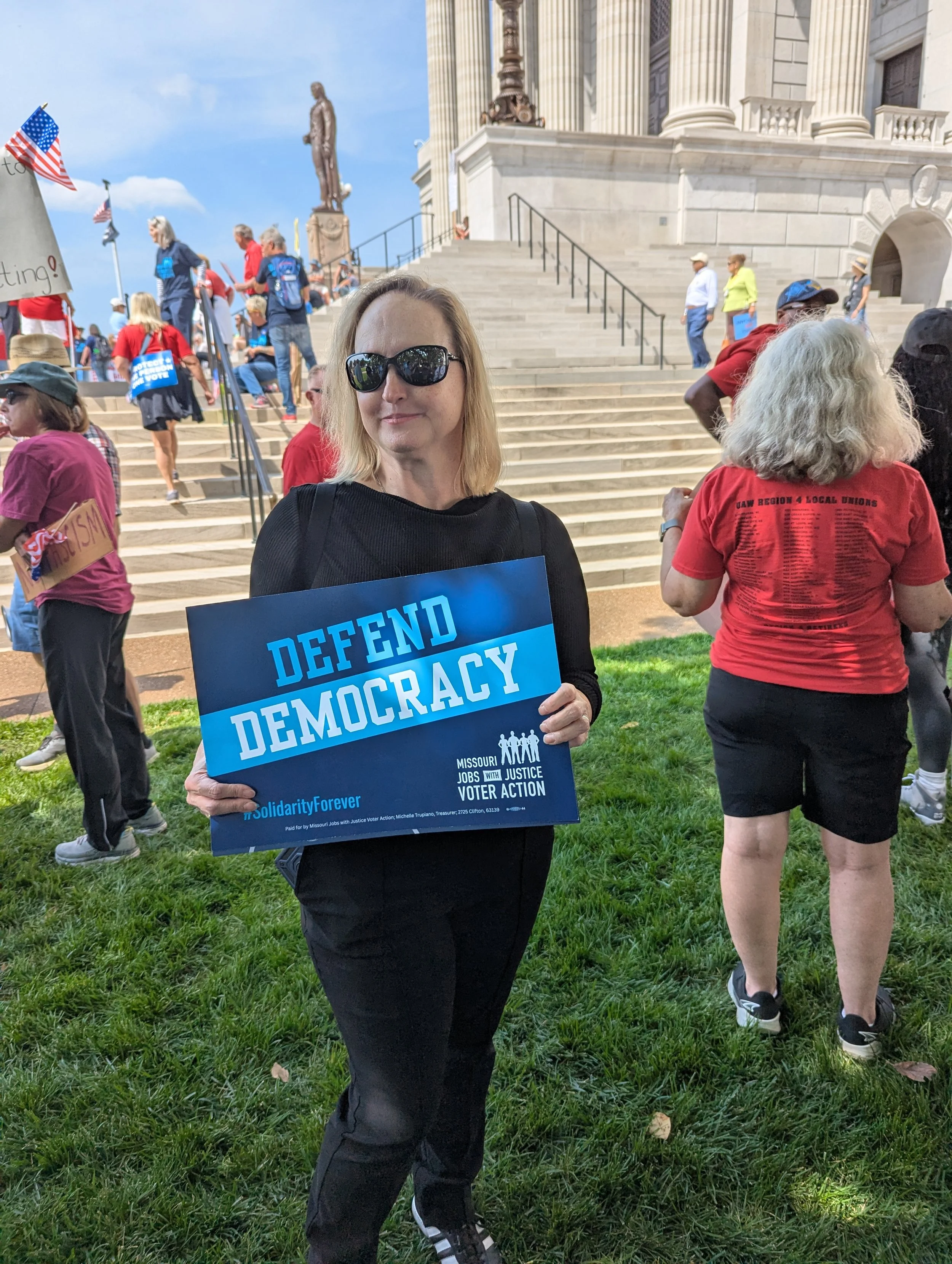 Meredith Sumenek grew up in the Midwest and was the first person in her family to graduate from college. Today, she is the president of the Tesson Ferry Democratic Organization, where she helps people learn about local and state issues and why it's important to be an informed and active voter.